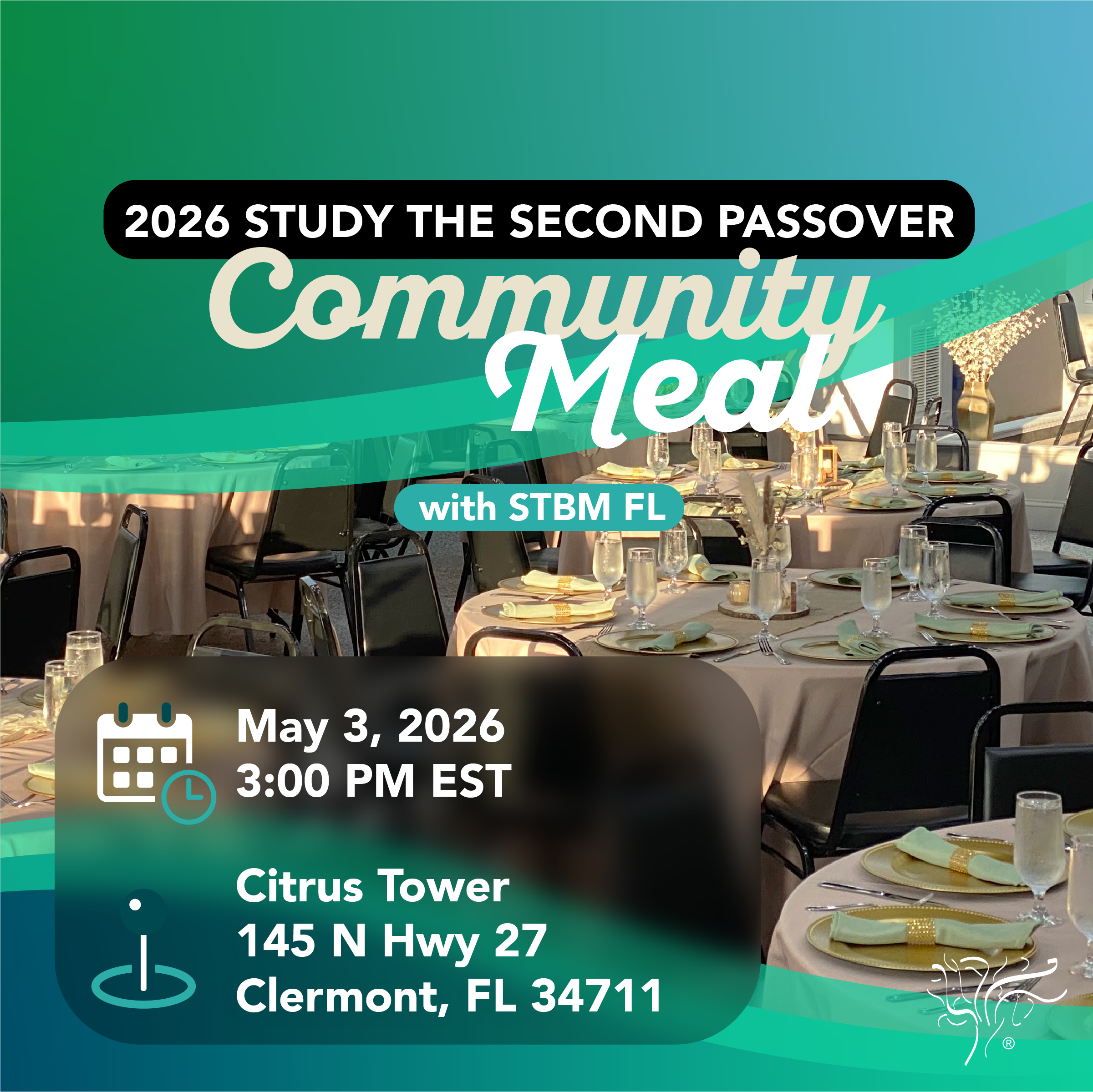 Join Ralph Messer and the STBM Florida community on May 3, 2026, for a meaningful and exciting study all about the second Passover! You’ll be served a five-star meal at the newly renovated Citrus Tower banquet hall for only $105 a ticket for adults and $40 a ticket for children, ages 0-12.