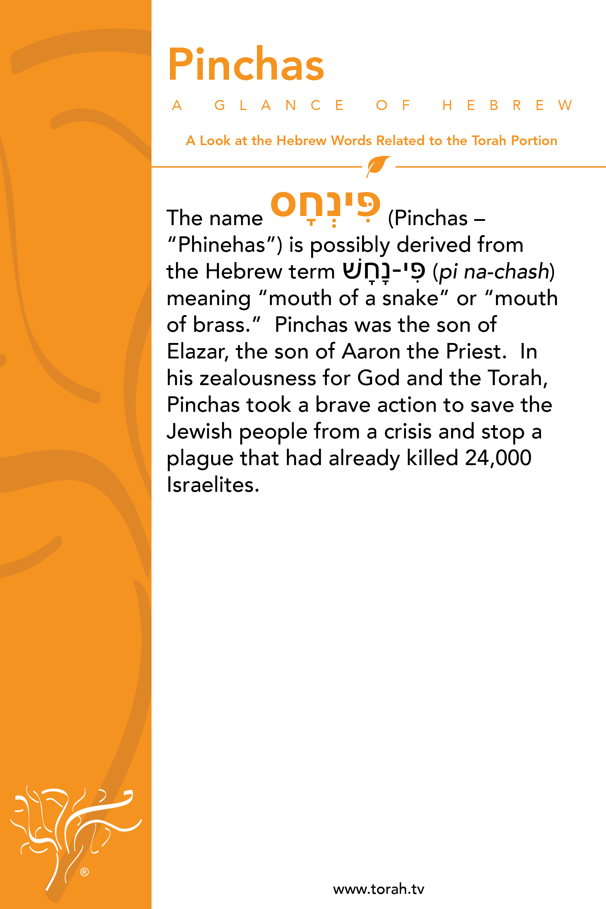 The actions of Pinchas teach us that when we see improper behavior, we shouldn’t just stand by and look away. We must boldly stand up for what is right and confront it, even if it goes against our nature. Like Pinchas, we must be loyal to God and His virtues. Loyalty is a virtue that drives success.